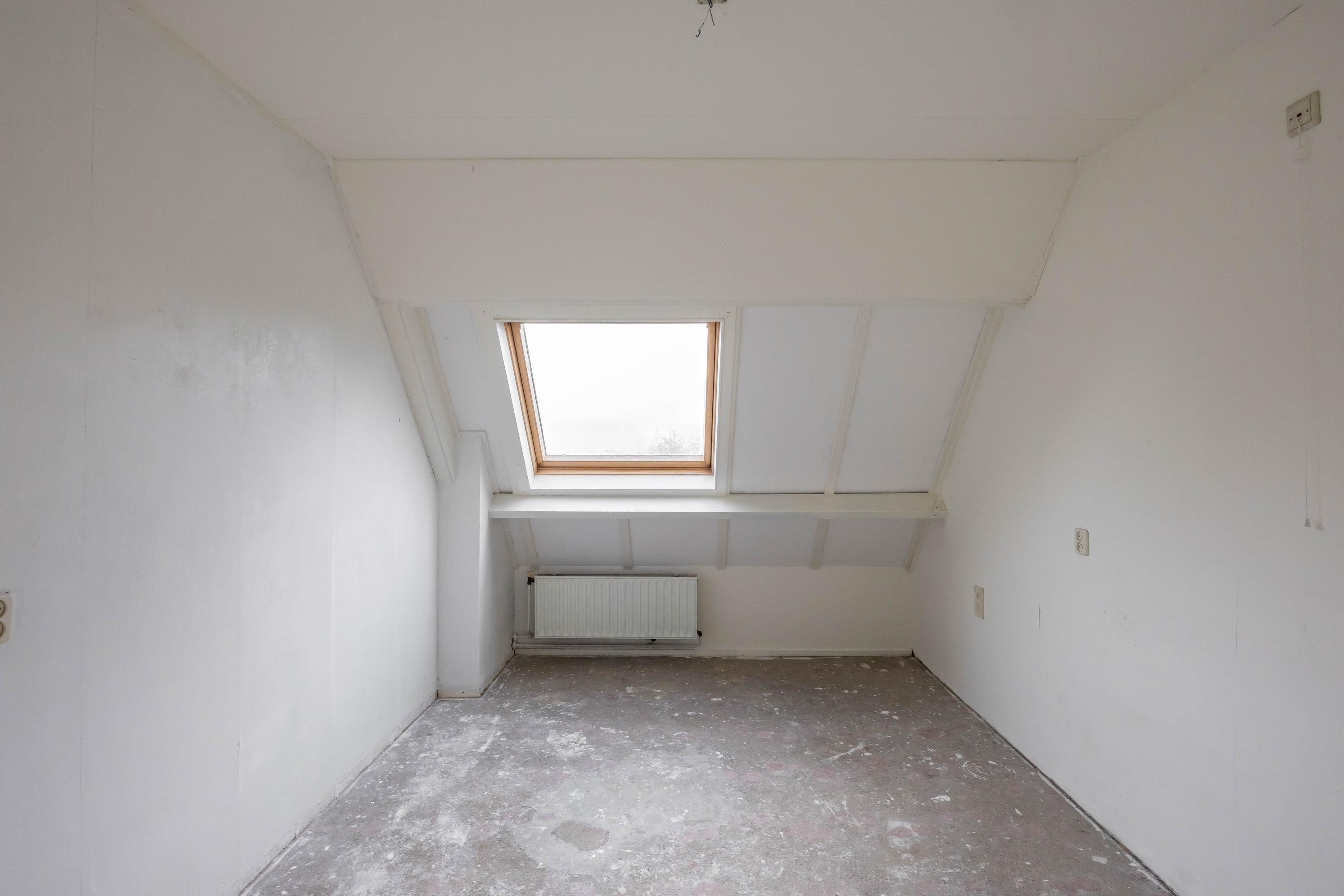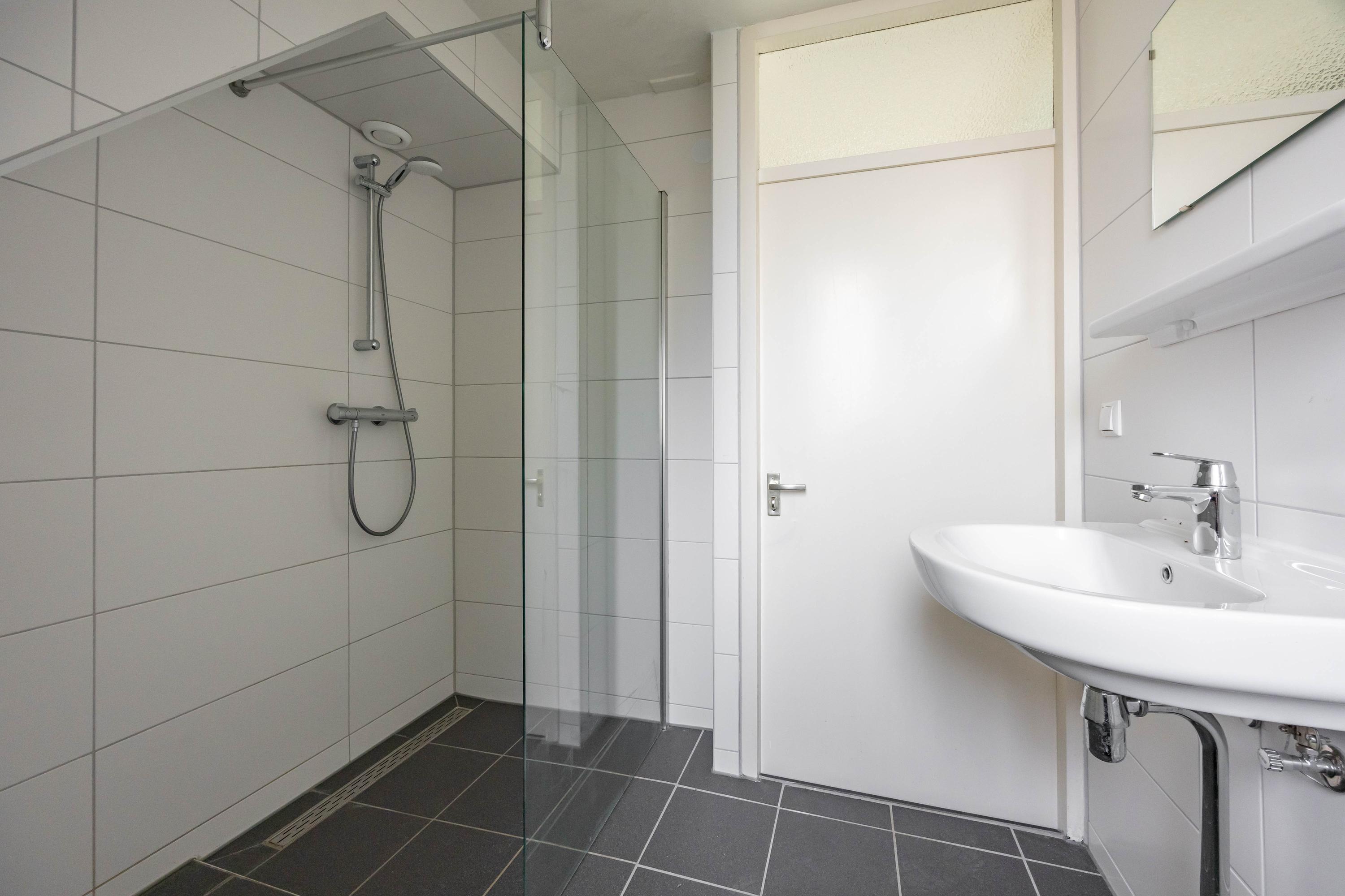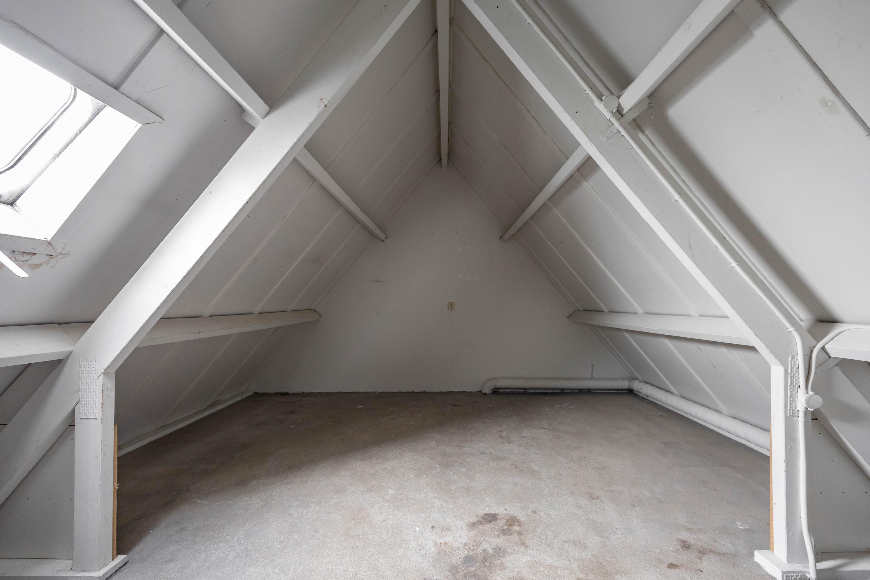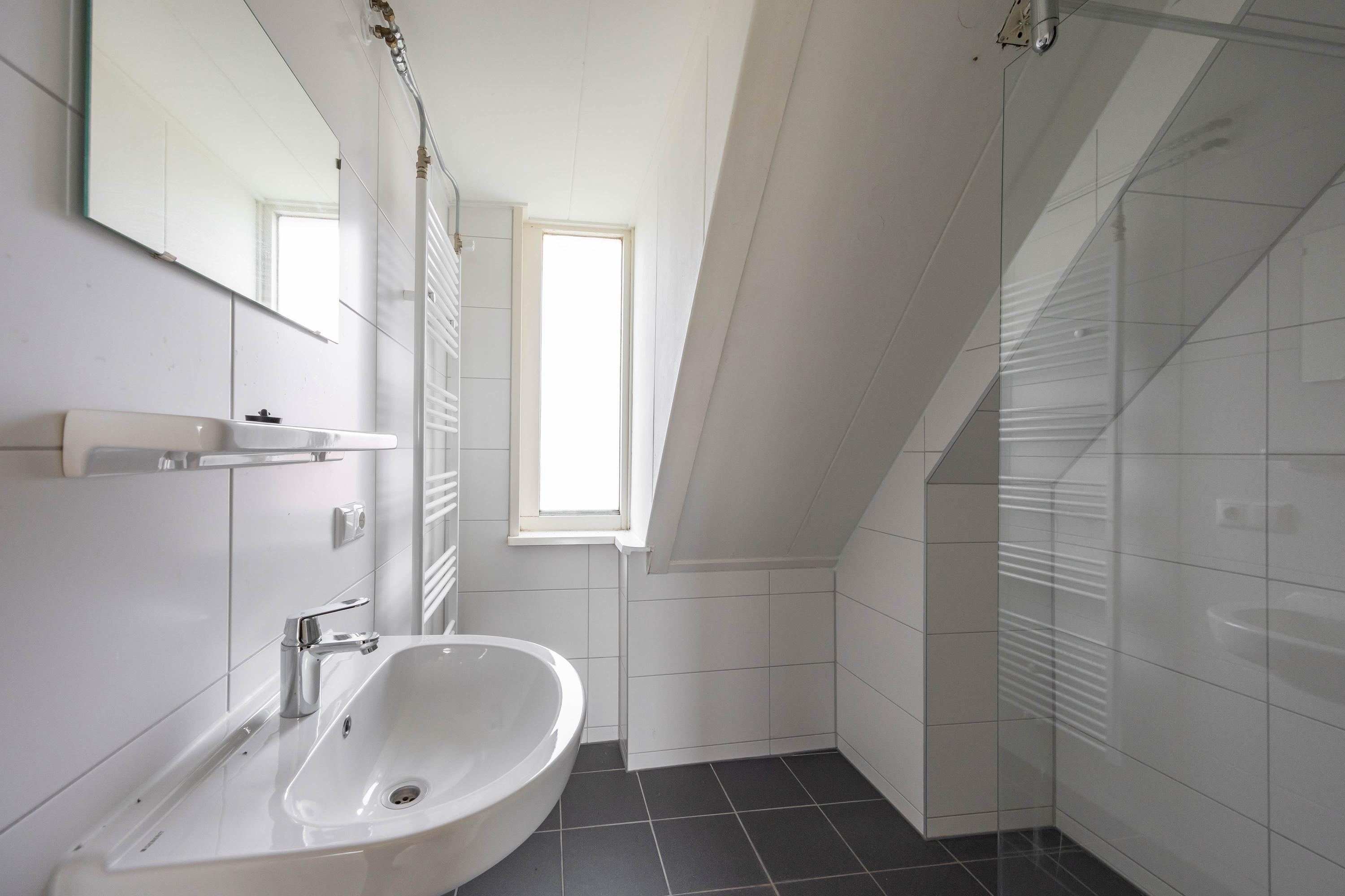 Op de eerste verdieping bevinden zich drie slaapkamers van respectievelijk circa 12 m², 9 m² en 6 m². Daarnaast is er een nette, moderne badkamer met inloopdouche en wastafel. Via een vaste trap is de ruime zolderverdieping bereikbaar.