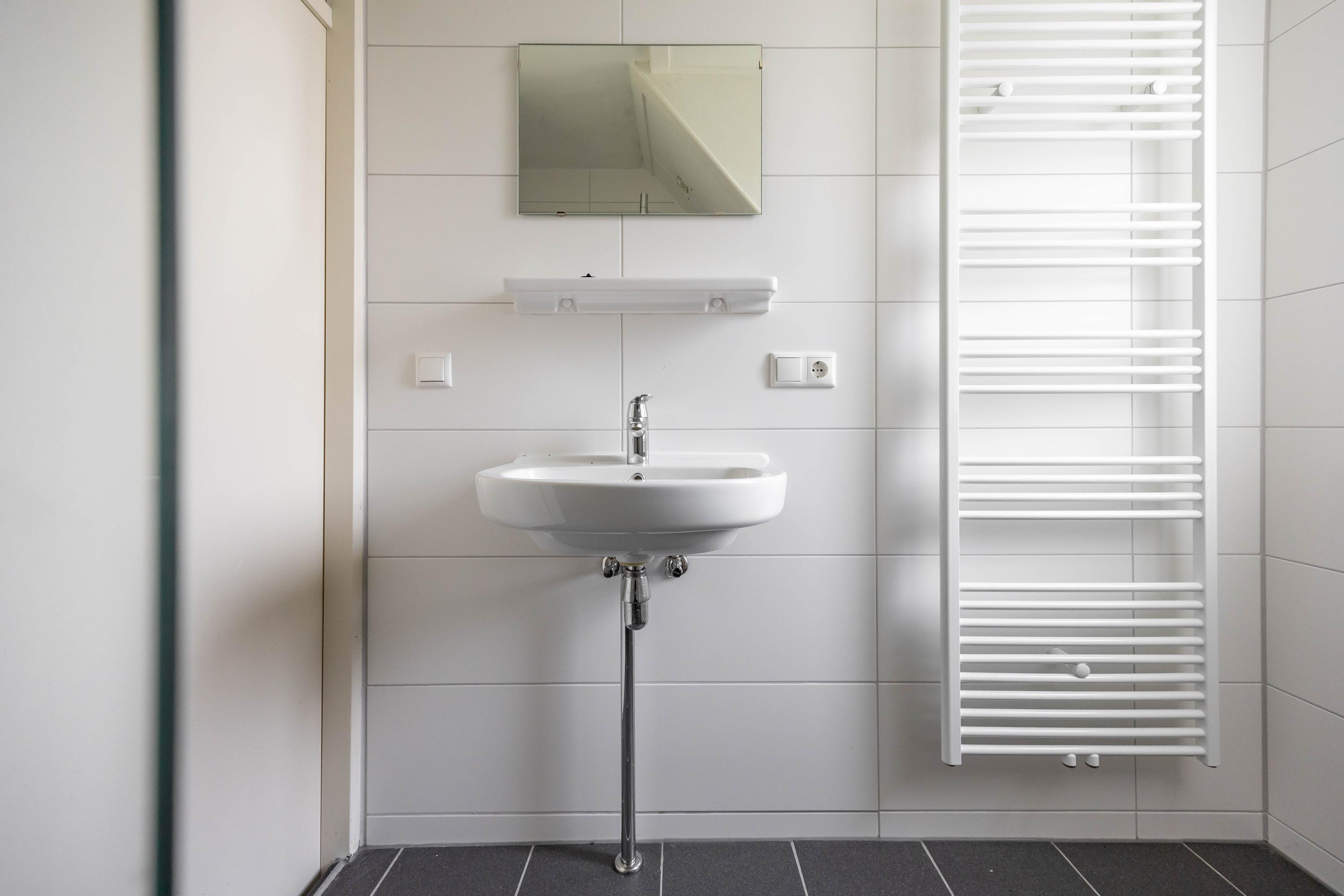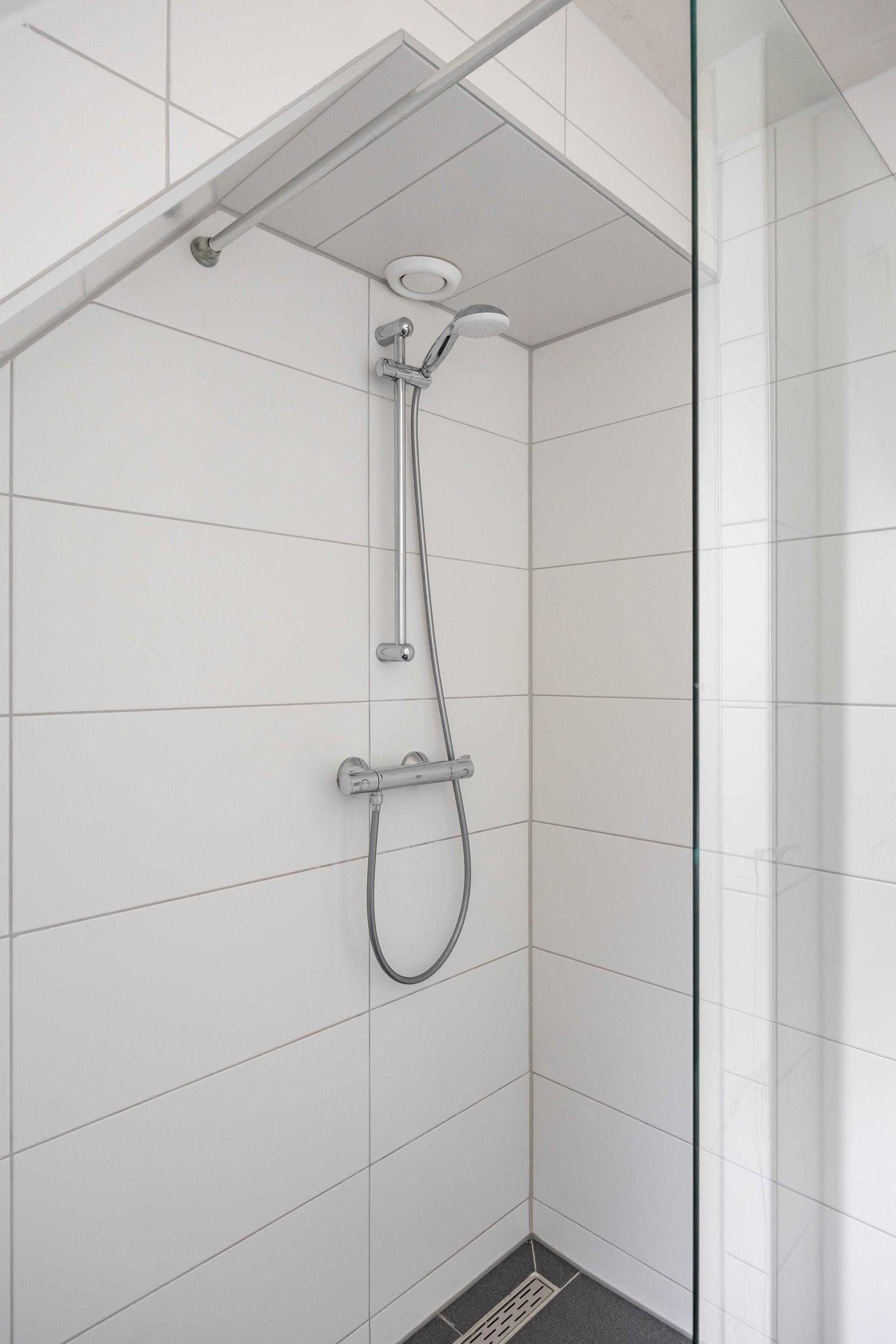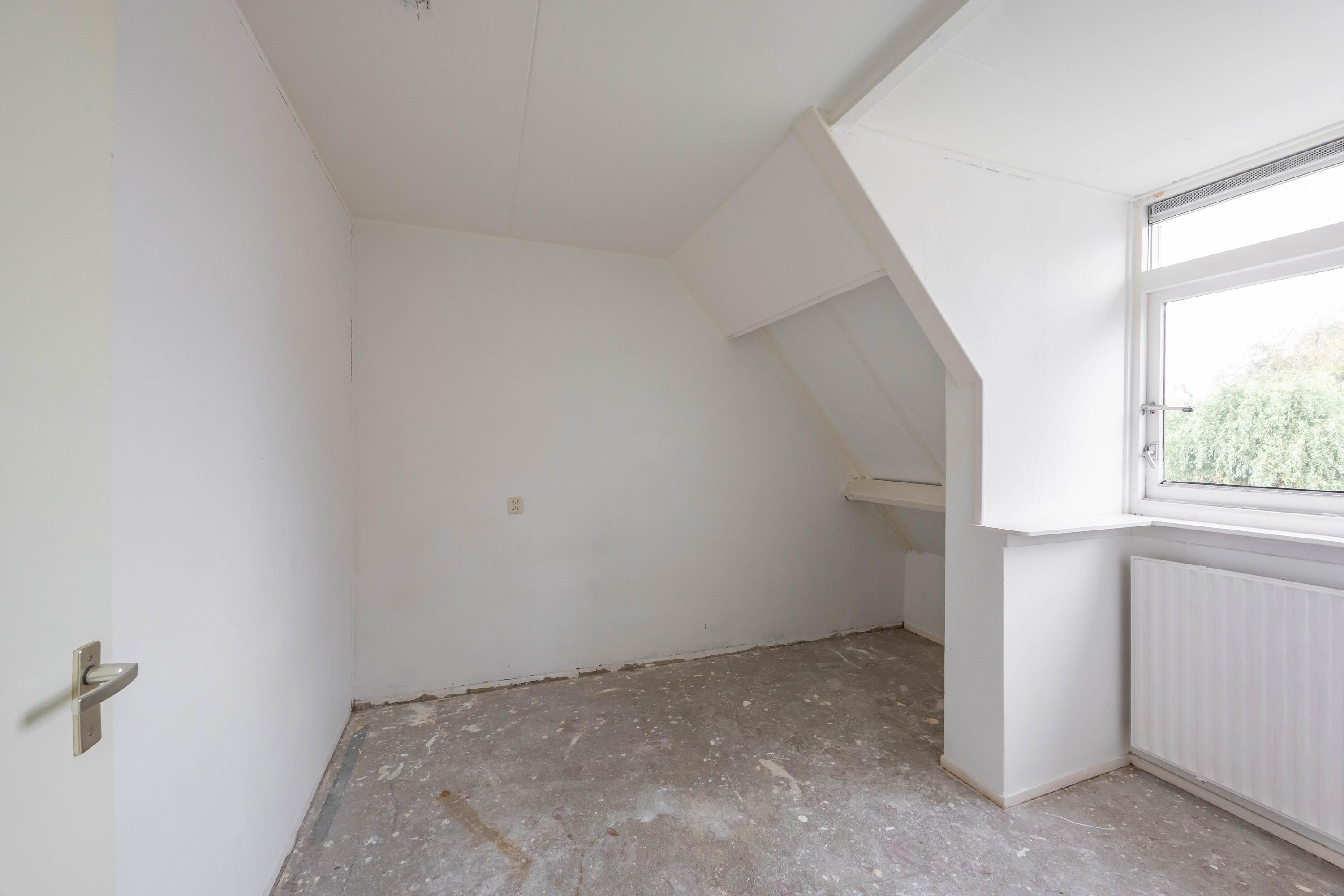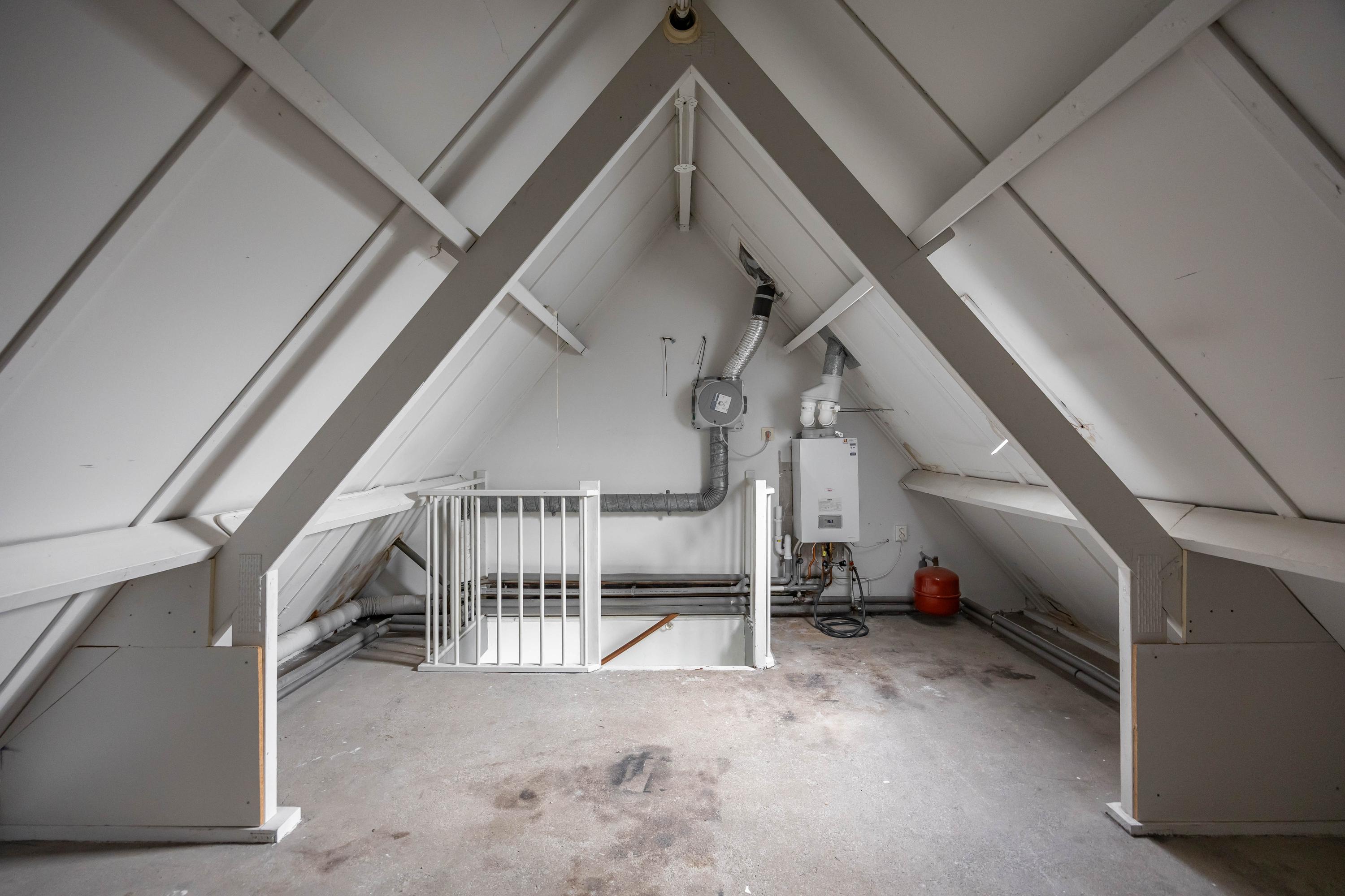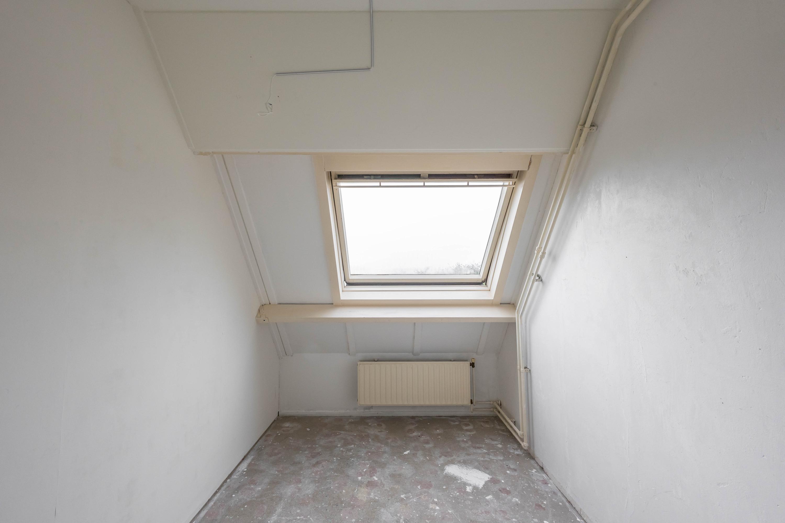 Op de eerste verdieping bevinden zich drie slaapkamers van respectievelijk circa 12 m², 9 m² en 6 m². Daarnaast is er een nette, moderne badkamer met inloopdouche en wastafel. Via een vaste trap is de ruime zolderverdieping bereikbaar.