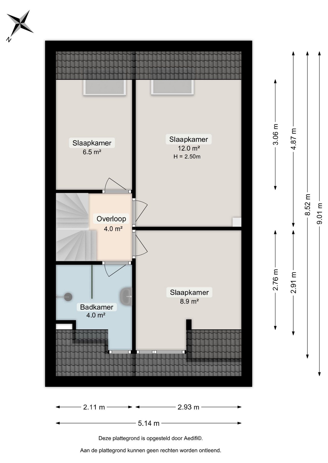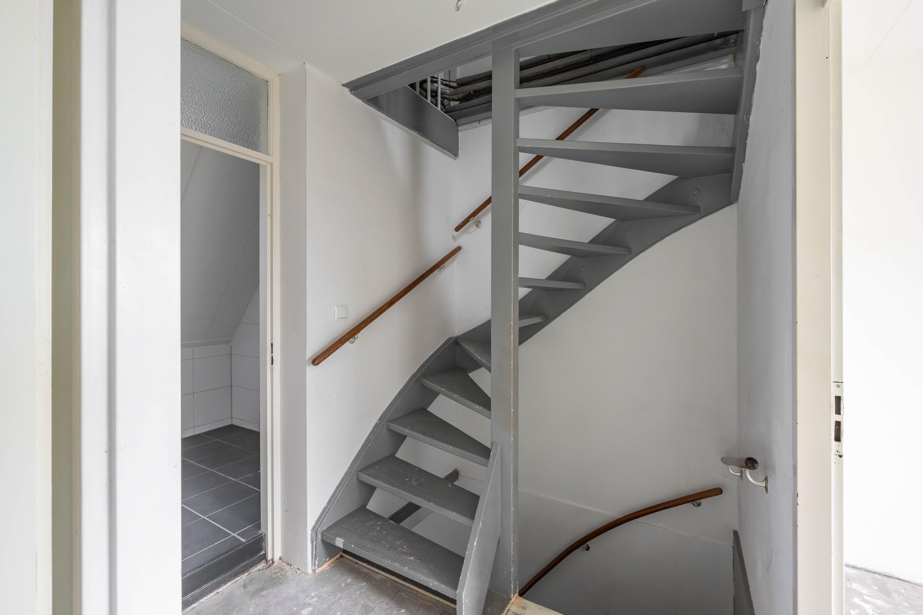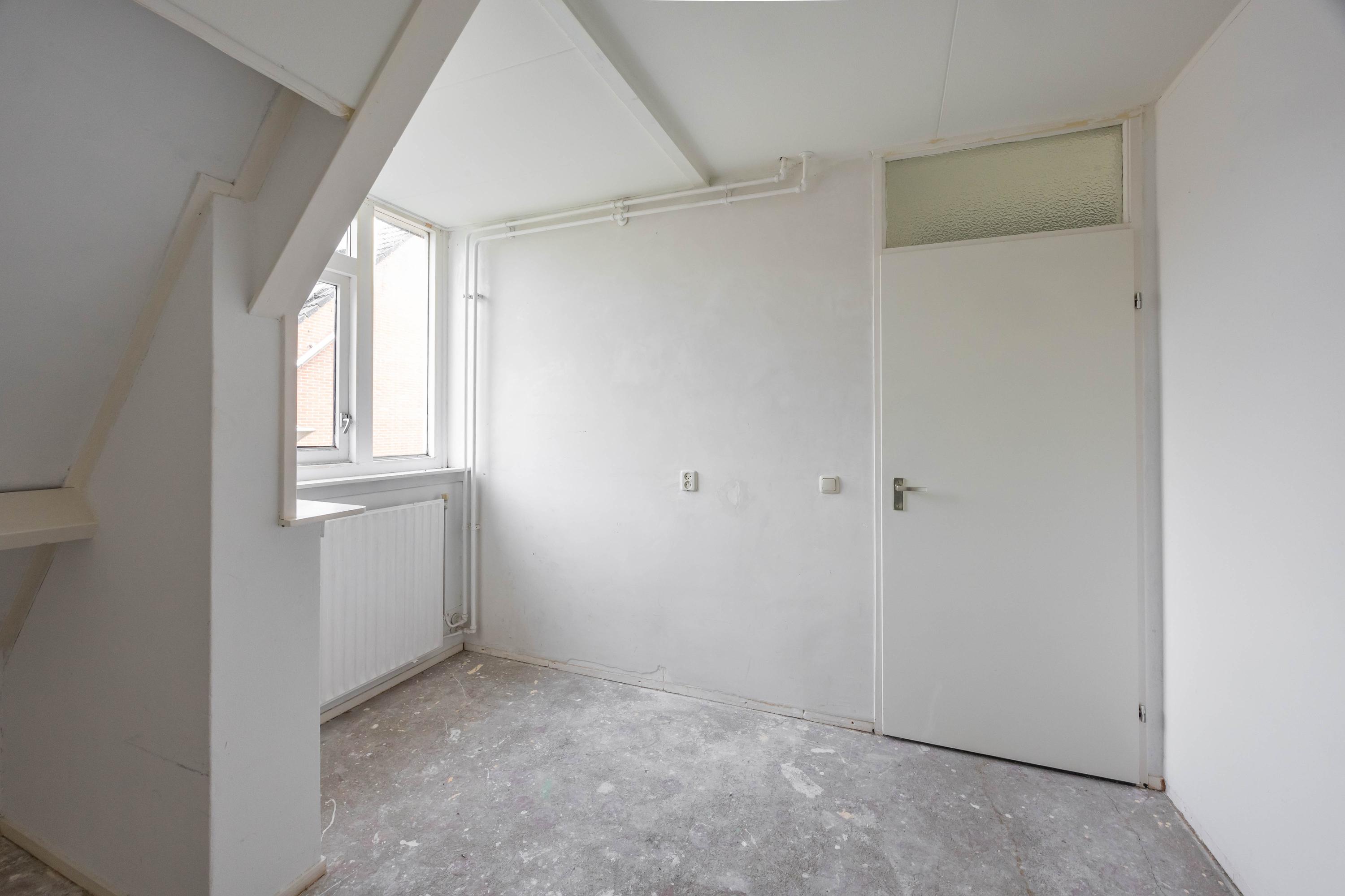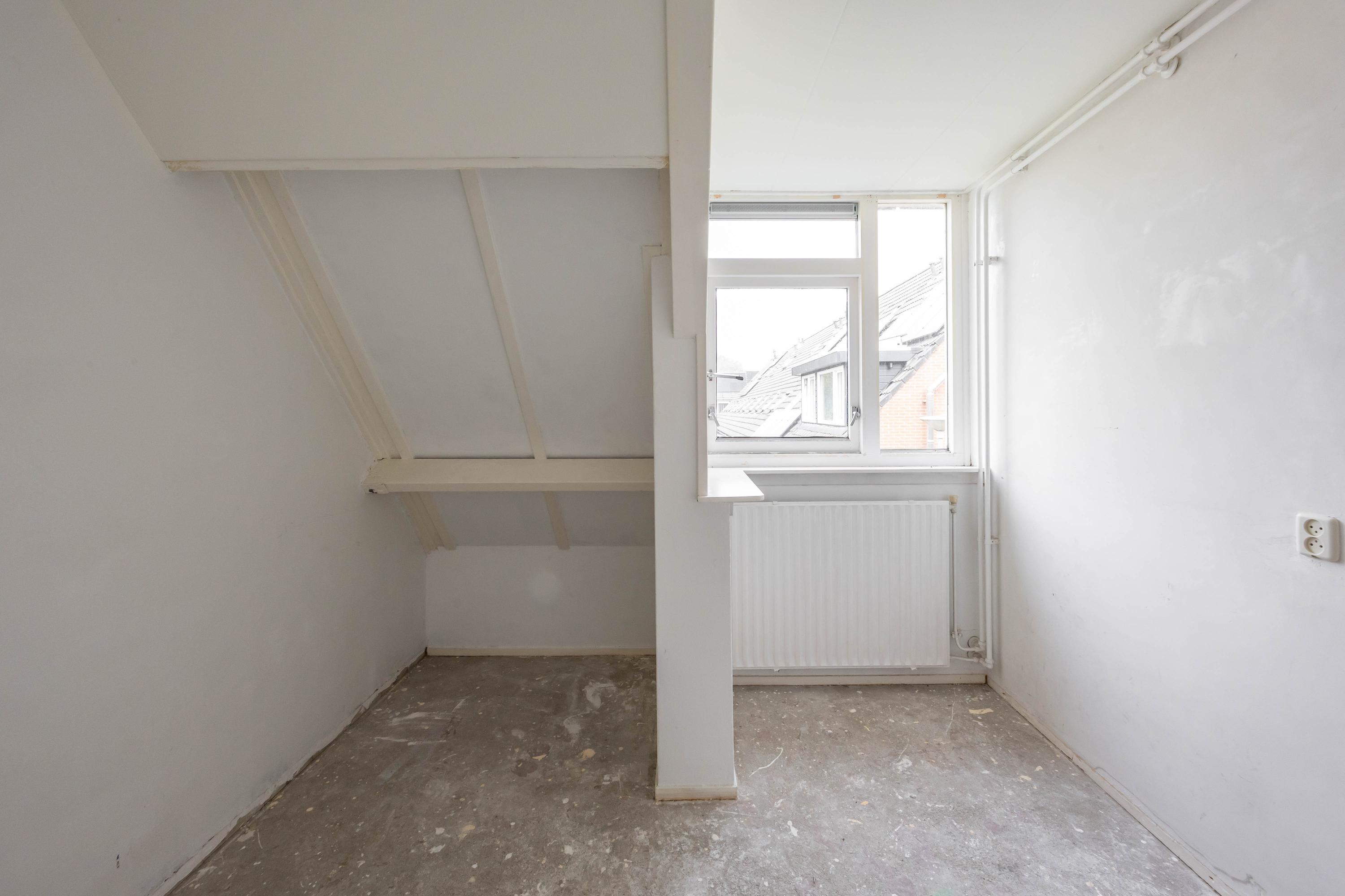 Op de eerste verdieping bevinden zich drie slaapkamers van respectievelijk circa 12 m², 9 m² en 6 m². Daarnaast is er een nette, moderne badkamer met inloopdouche en wastafel. Via een vaste trap is de ruime zolderverdieping bereikbaar.