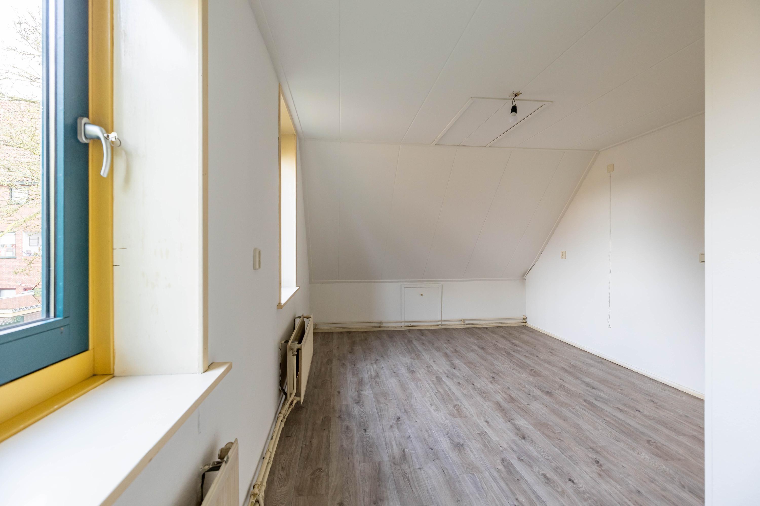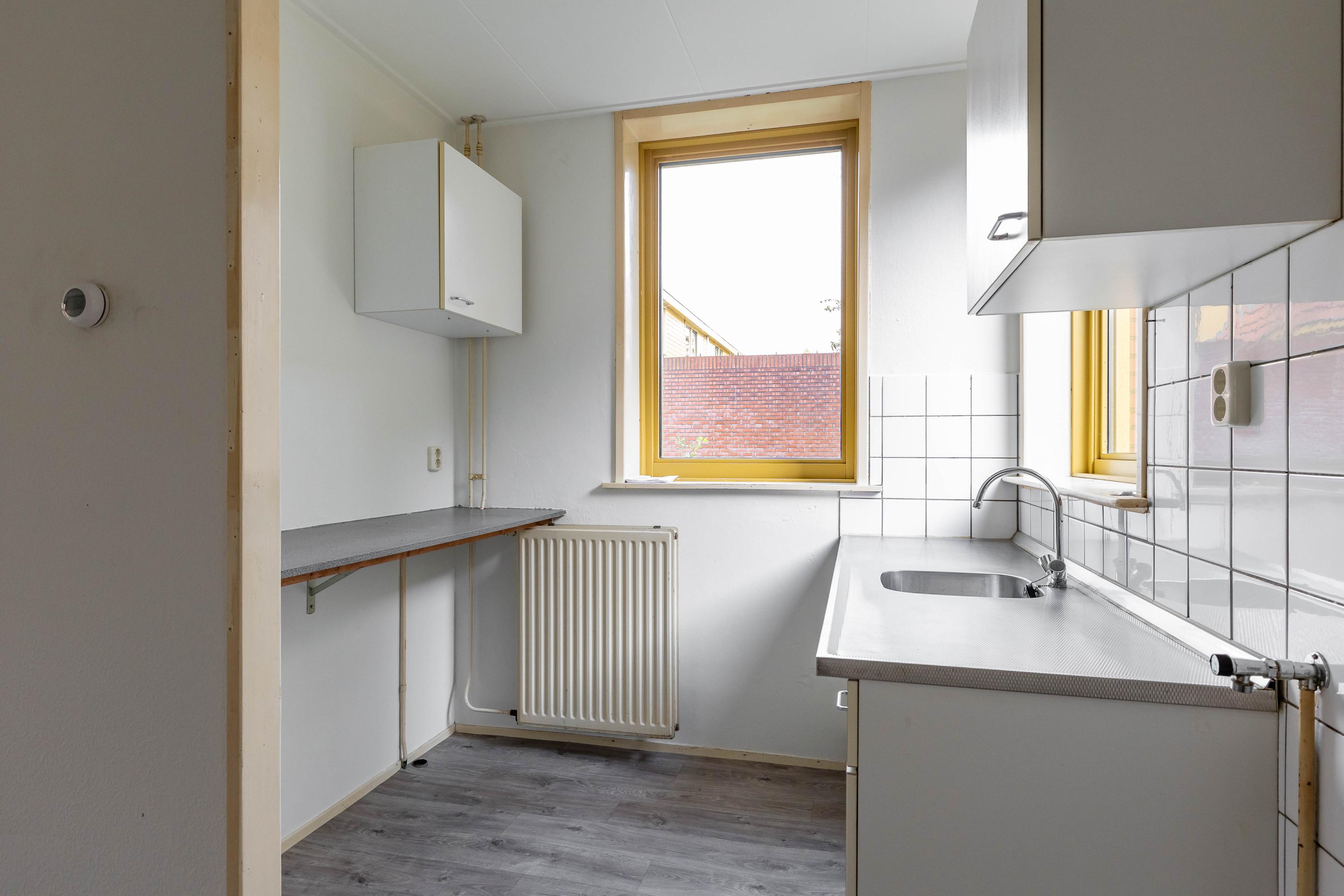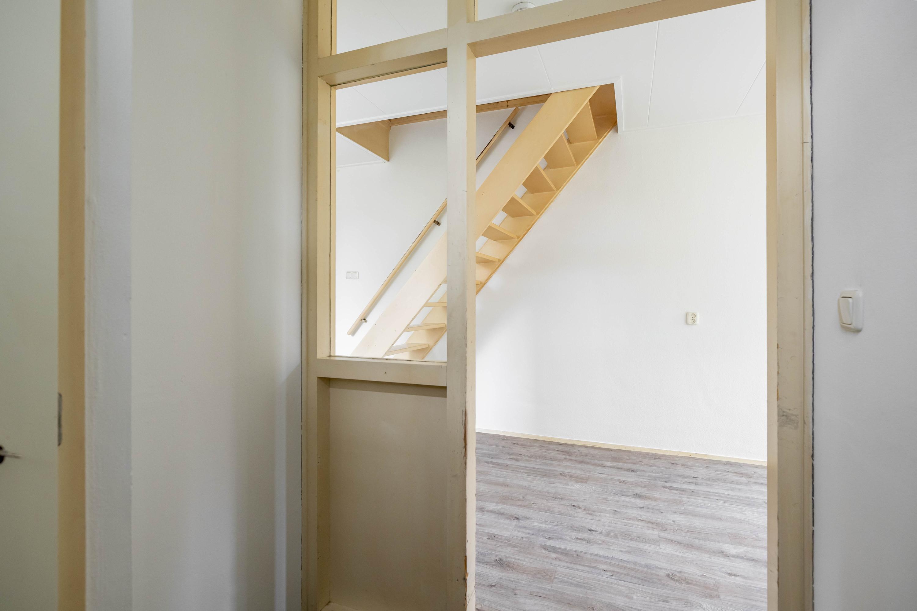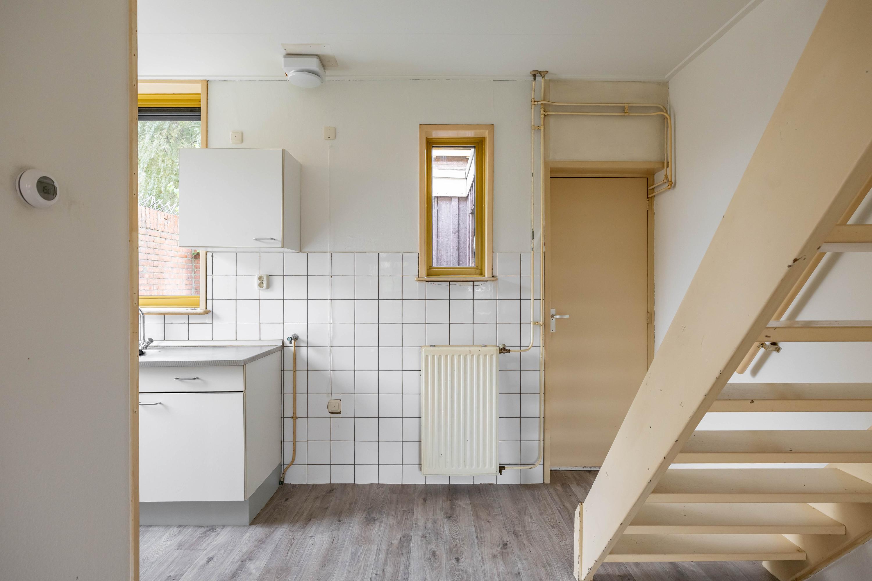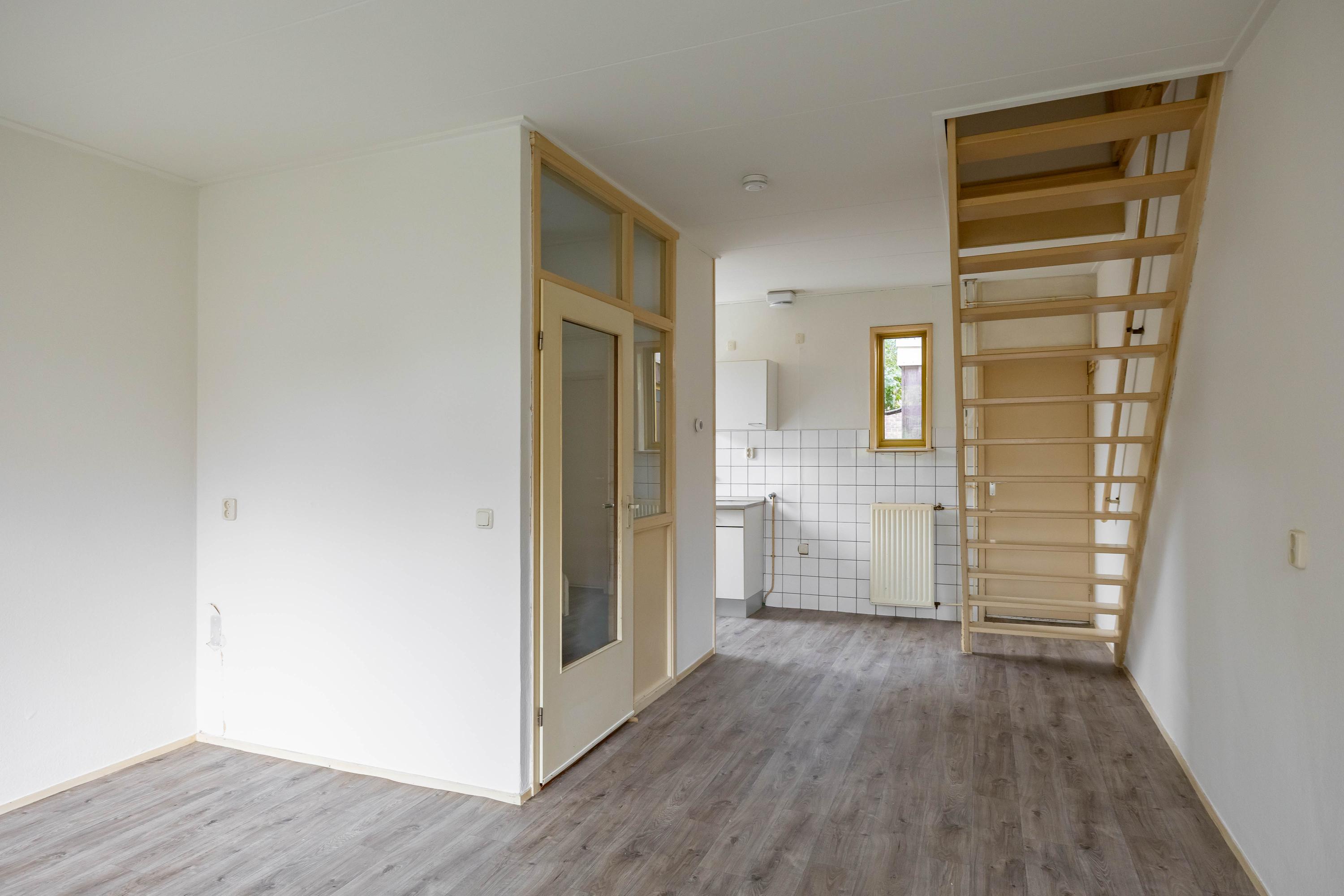 Indeling: entree, woonkamer met een open keuken v.v. toegang tot de tuin. Via een tussenhalletje toegang zij-ingang. Via de trap in de woonkamer naar de verdieping met overloop, slaapkamer en badkamer.