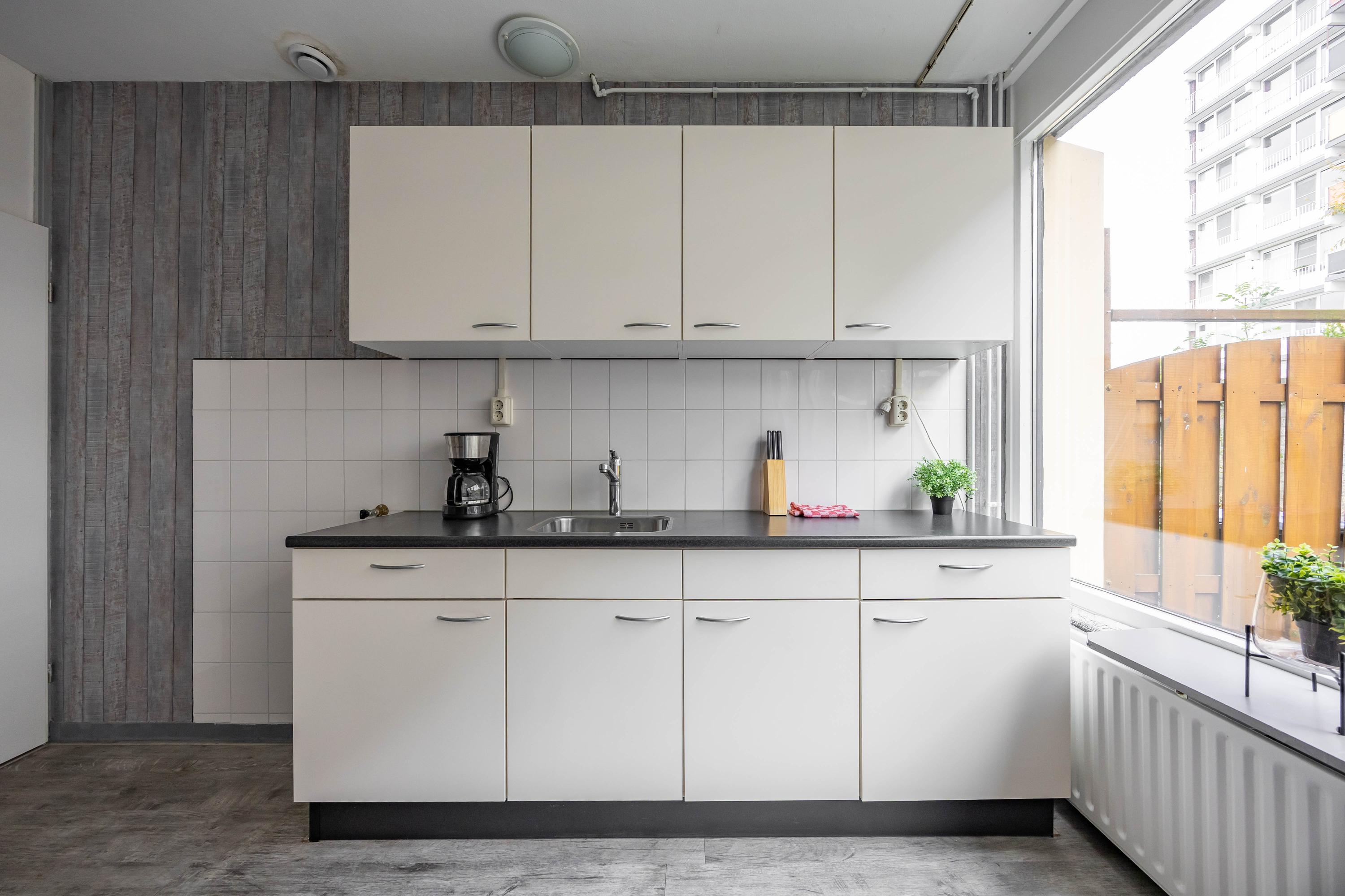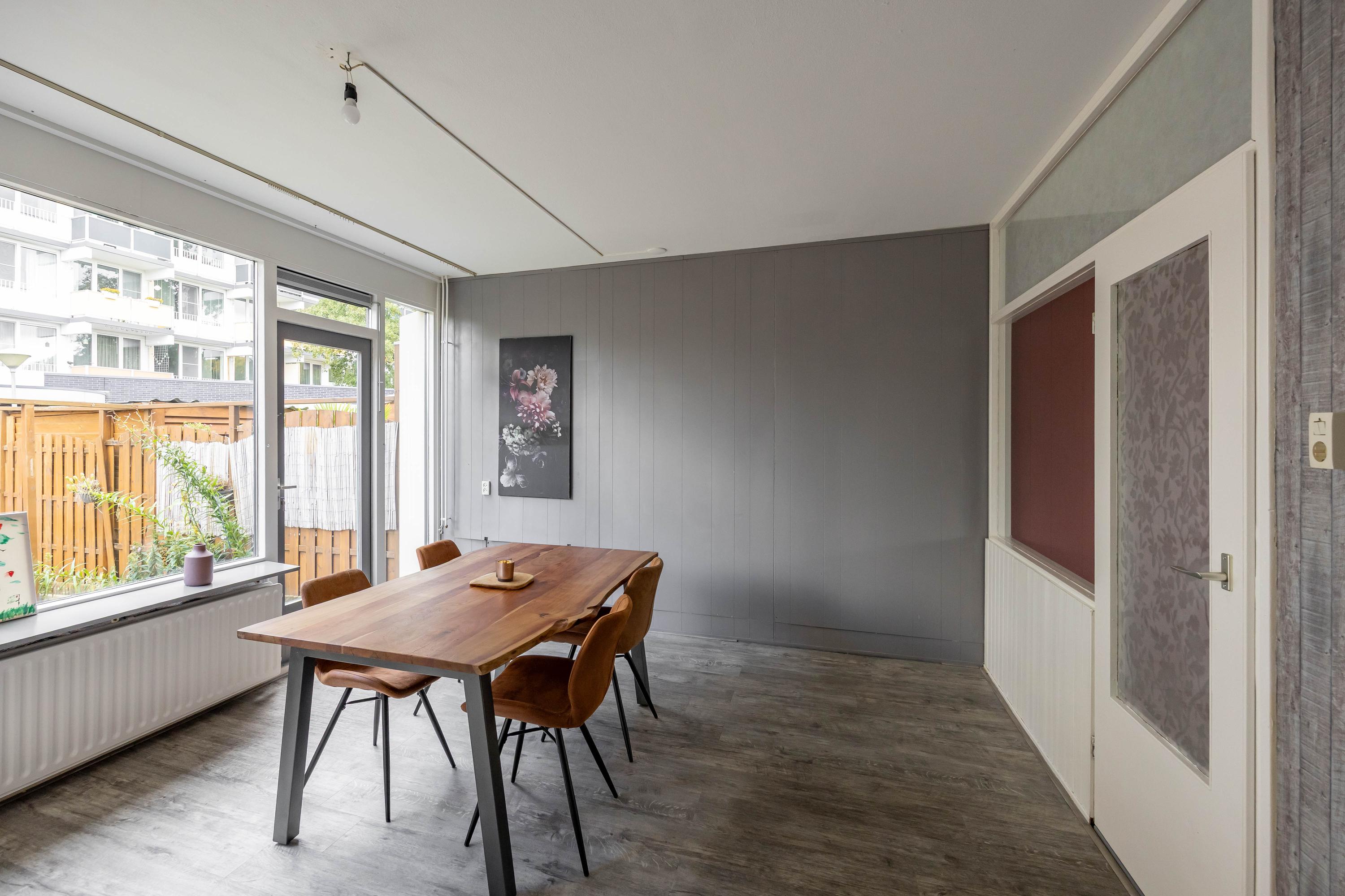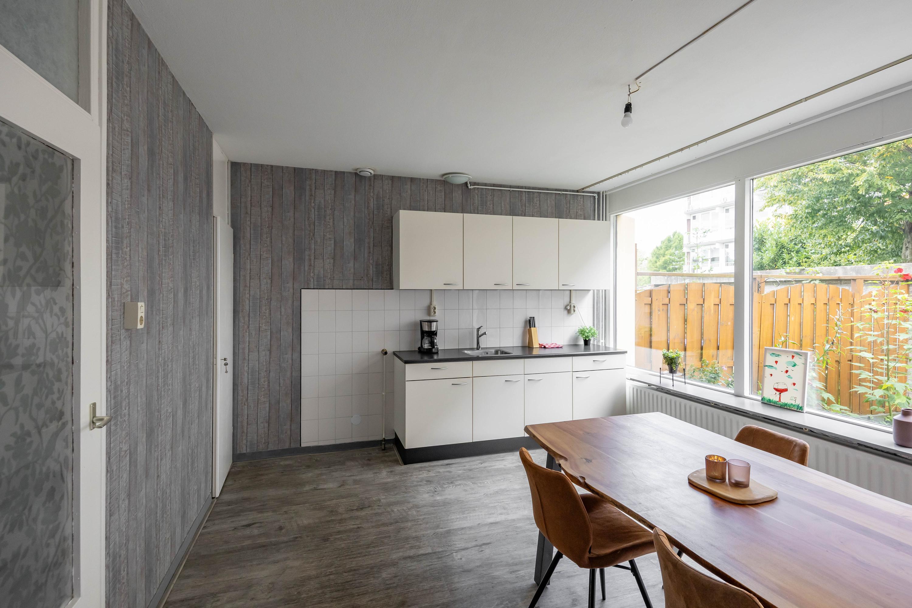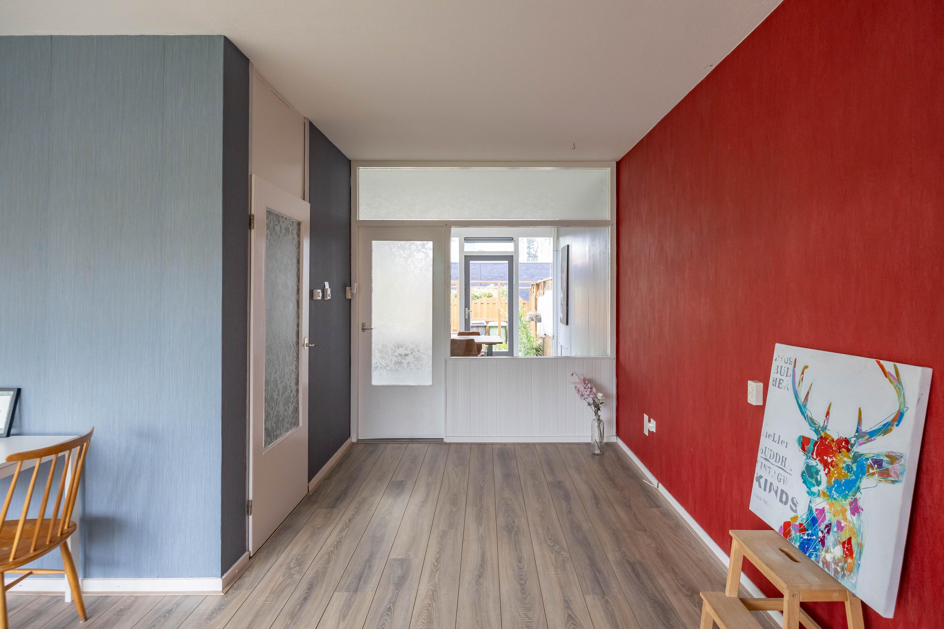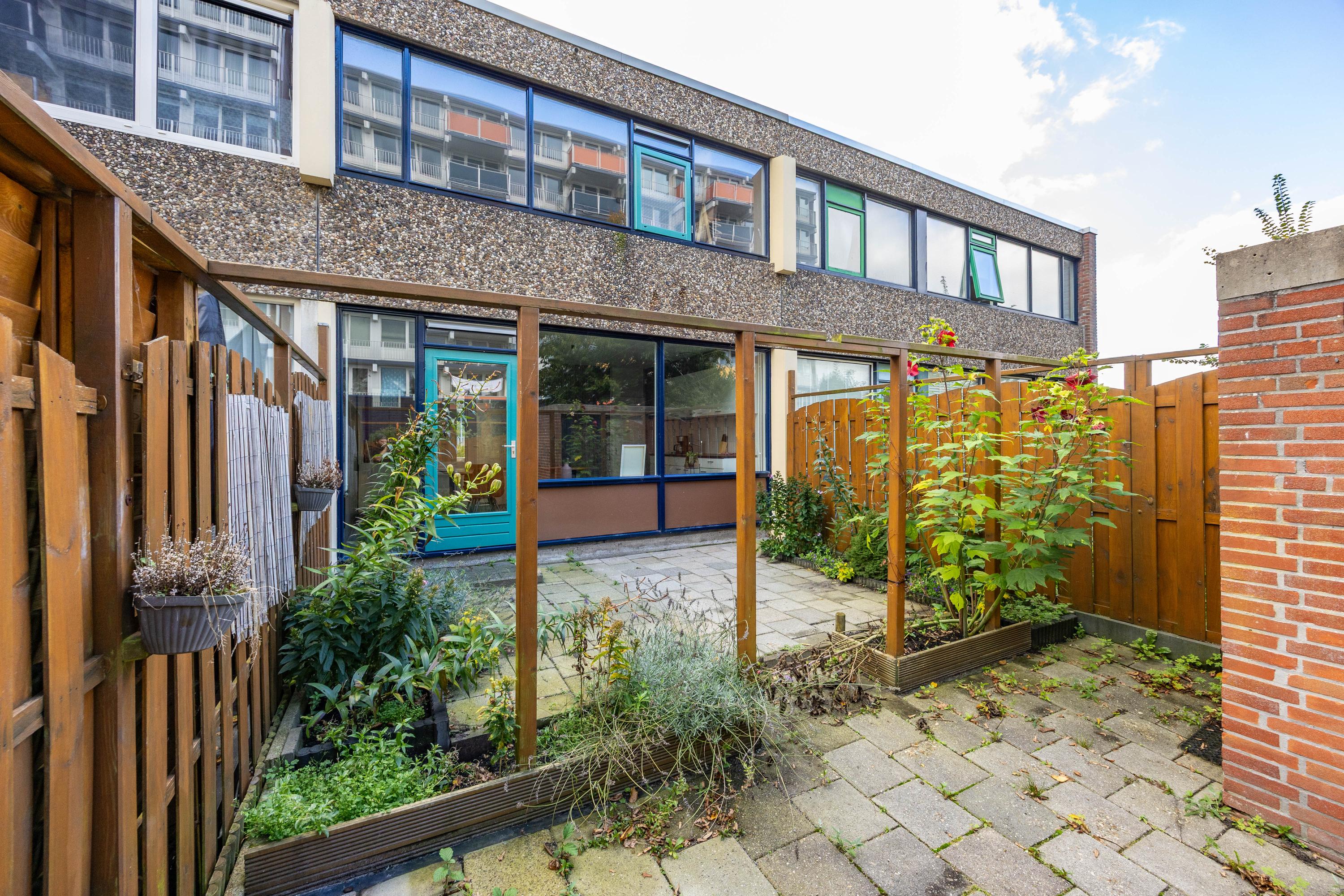 Indeling: Bij binnenkomst in deze woning wordt u verwelkomd door een ruime entree met garderobe, waar u uw jassen en schoenen gemakkelijk kunt opbergen. De grote woonkamer, gelegen aan de achterzijde, biedt uitzicht op de zonnige achtertuin. Aan de voorzijde van de woning bevindt zich een eenvoudige keuken die uitzicht biedt op de voortuin. De achtertuin is voorzien van een bergingen en een achterom.