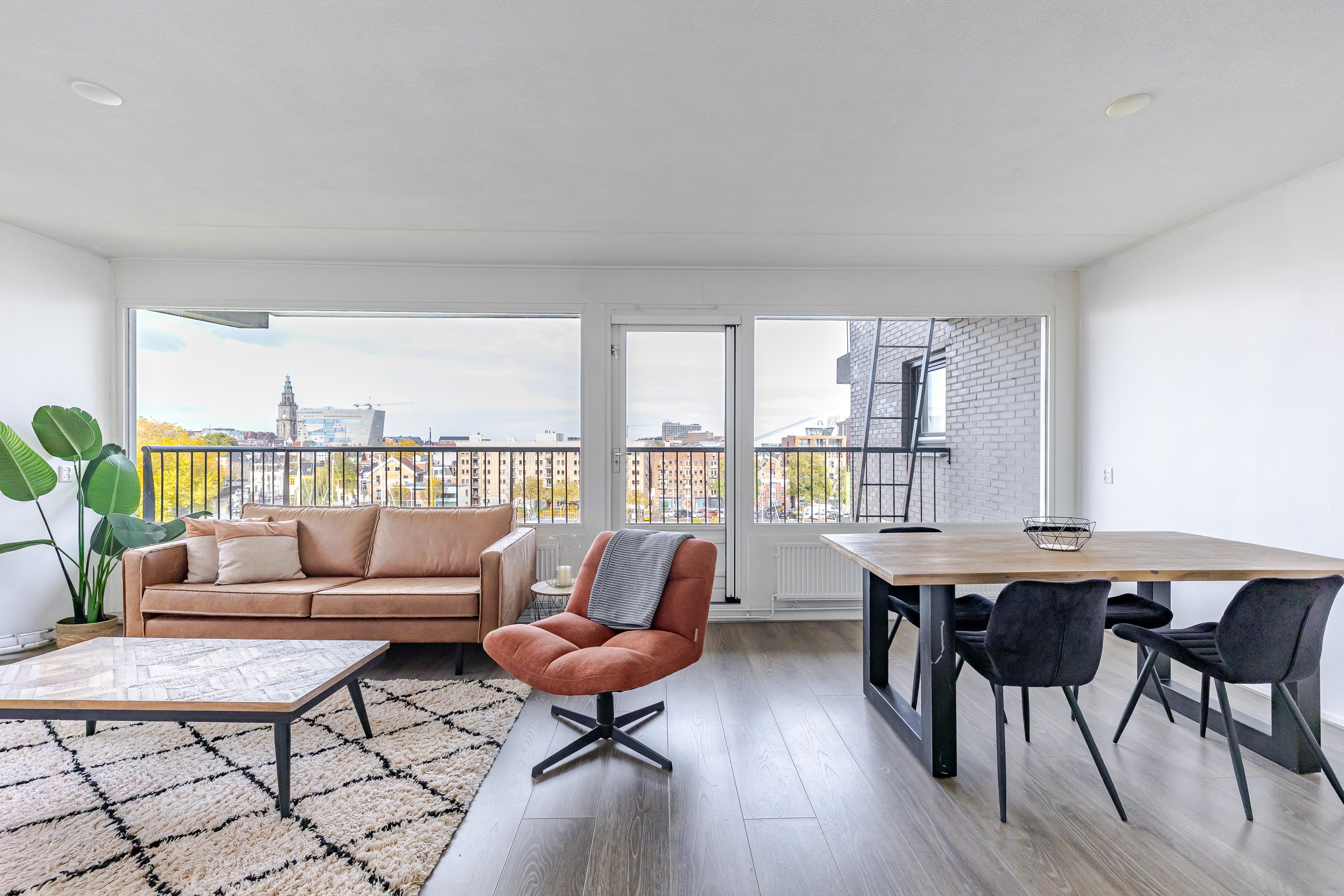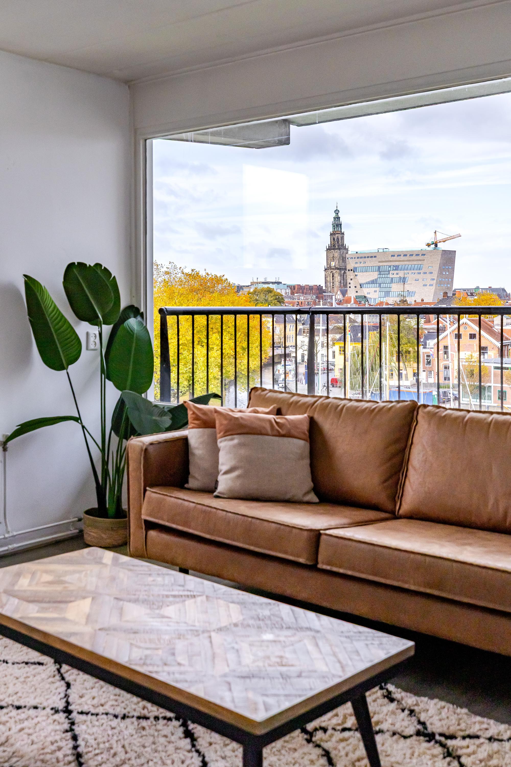 Dankzij de unieke centrale ligging in combinatie met het prachtige uitzicht staat dit appartement garant voor optimaal woonplezier. Het appartement maakt onderdeel uit van De Brinkflats, in de jaren '80 gerealiseerd naar ontwerp van architect Rem Koolhaas. Beide torens liggen aan een kruispunt van waterwegen. De bewoners maken volop gebruik van de gemeenschappelijke groenstrook aan de kade van het winschoterdiep/eemskanaal.
