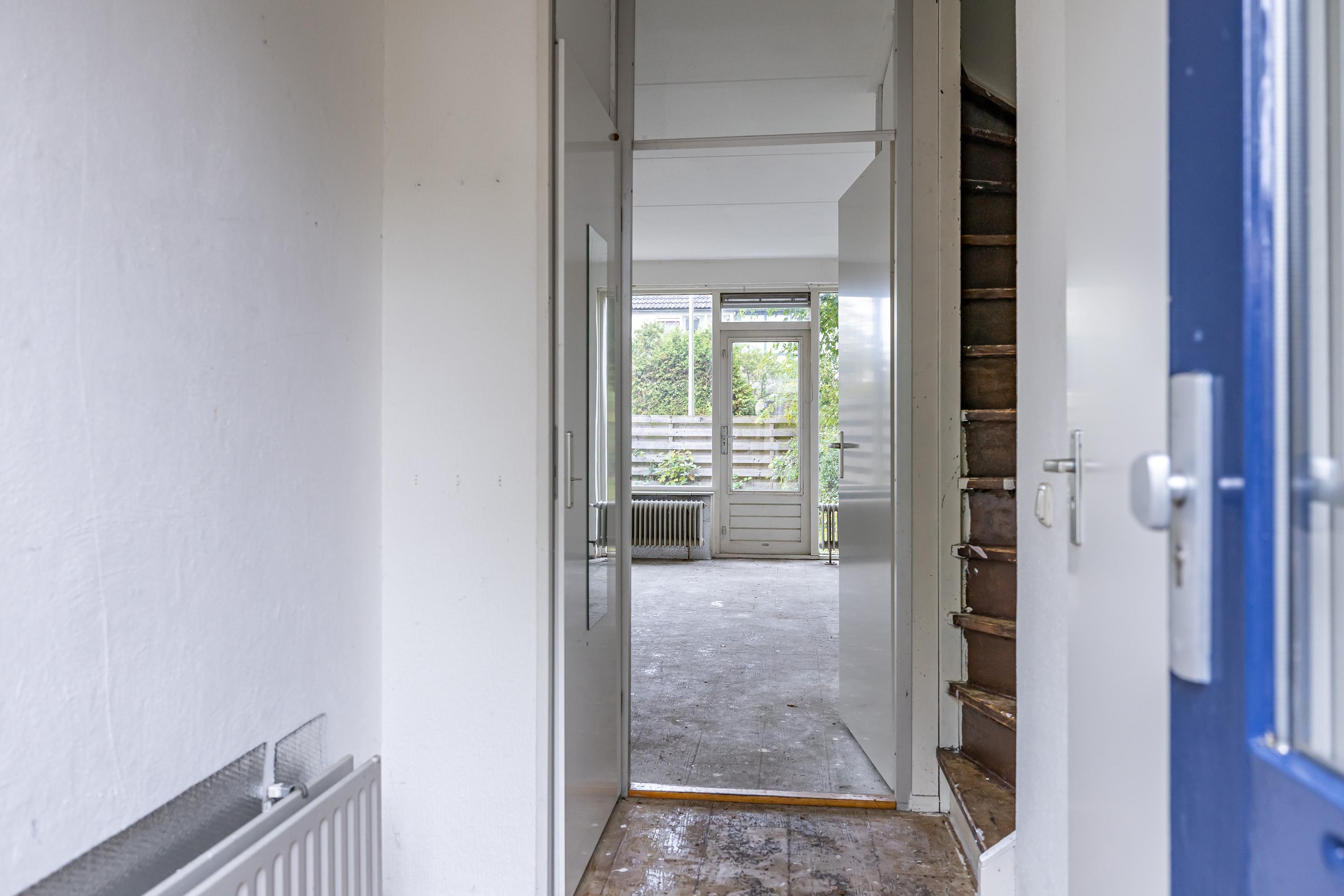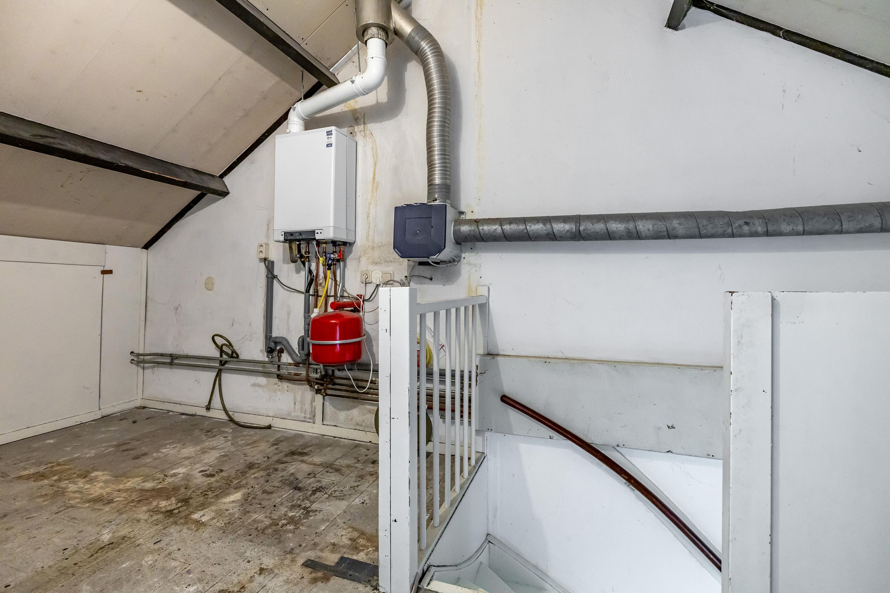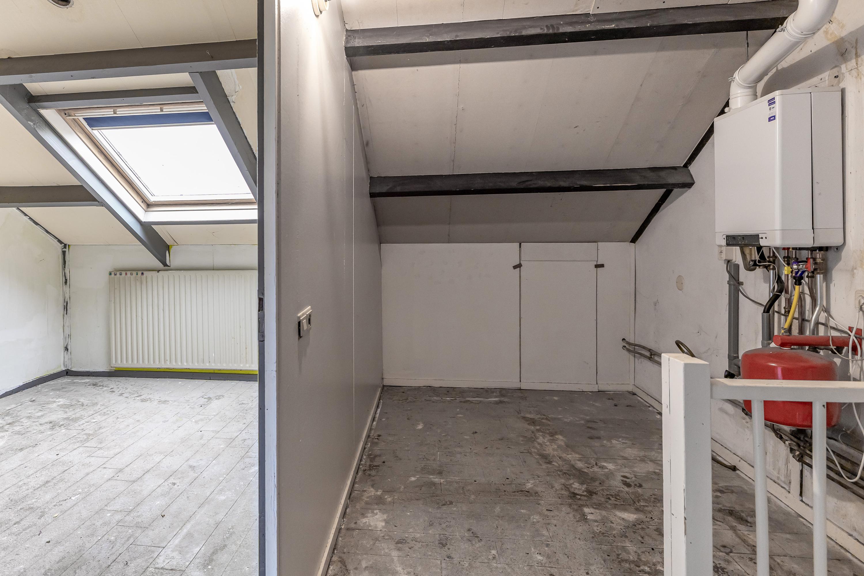 Indeling: Entree, toilet, woonkamer met aansluitend de gemoderniseerde keuken met inbouwapparatuur, tuin gerichte woonkamer met toegang tot de tuin. Verdieping, overloop, drie slaapkamers en een badkamer met toilet. Op de zolderverdieping, naast veel bergruimte een vierde slaapkamer.