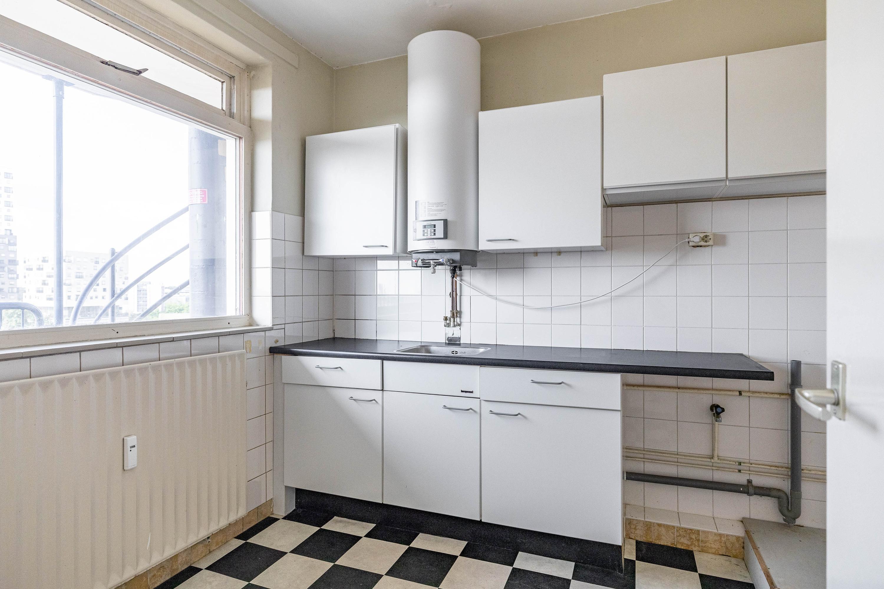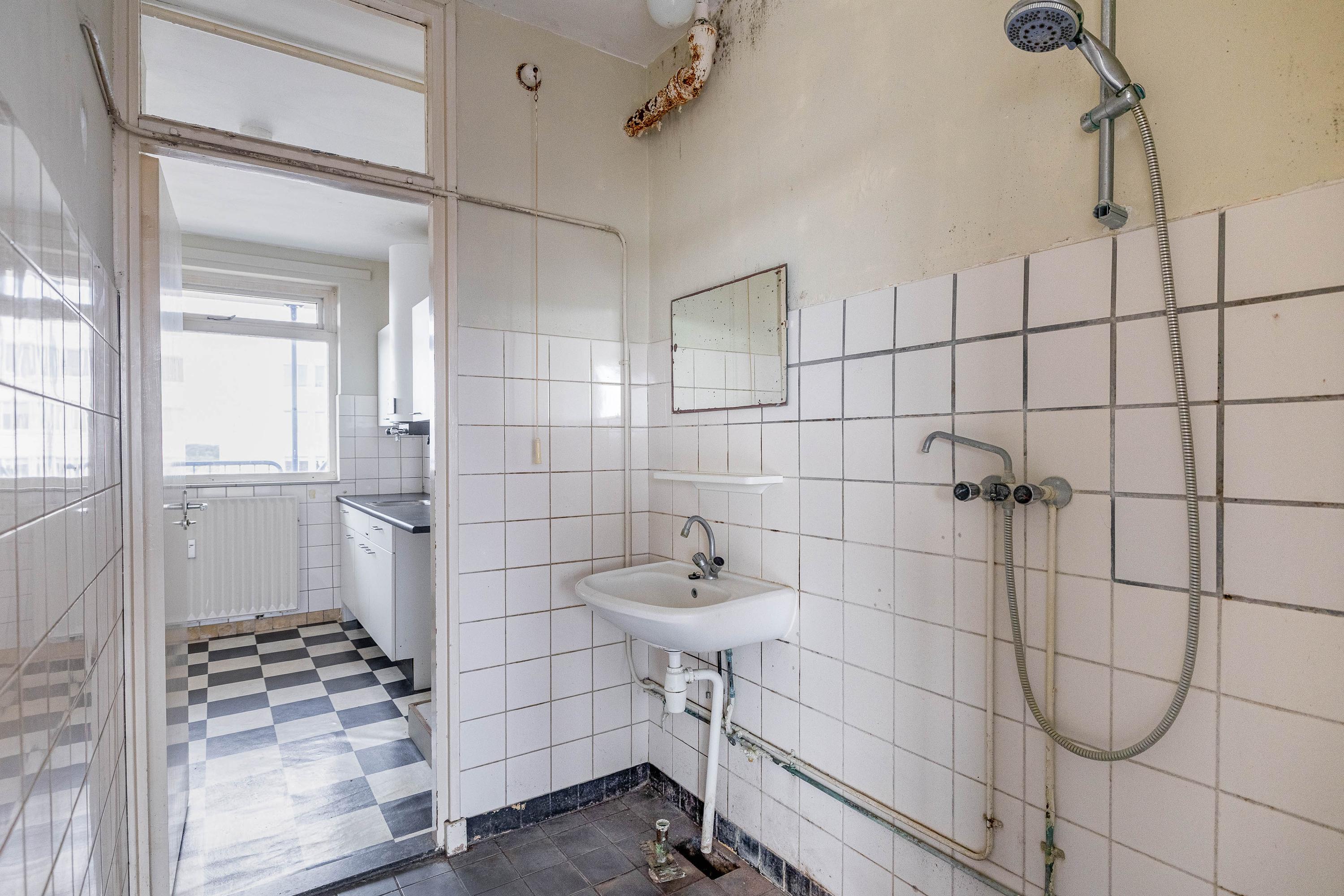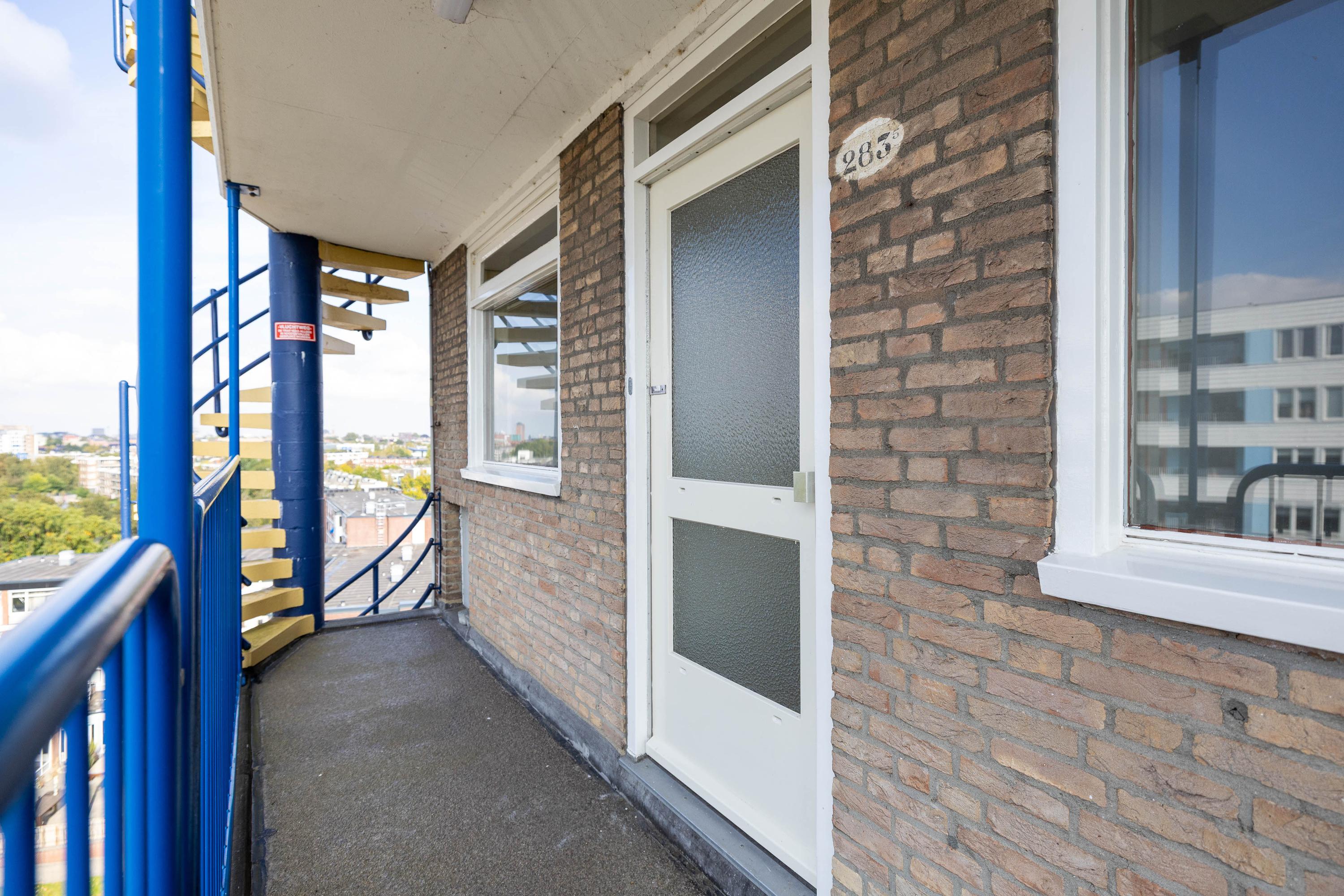 Indeling: hal, woonkamer circa 28 m2 , slaapkamer circa 10m2, nette keuken, verouderde badkamer met douche, separaat toilet en balkon met uitzicht over winkelcentrum Overwinningsplein.