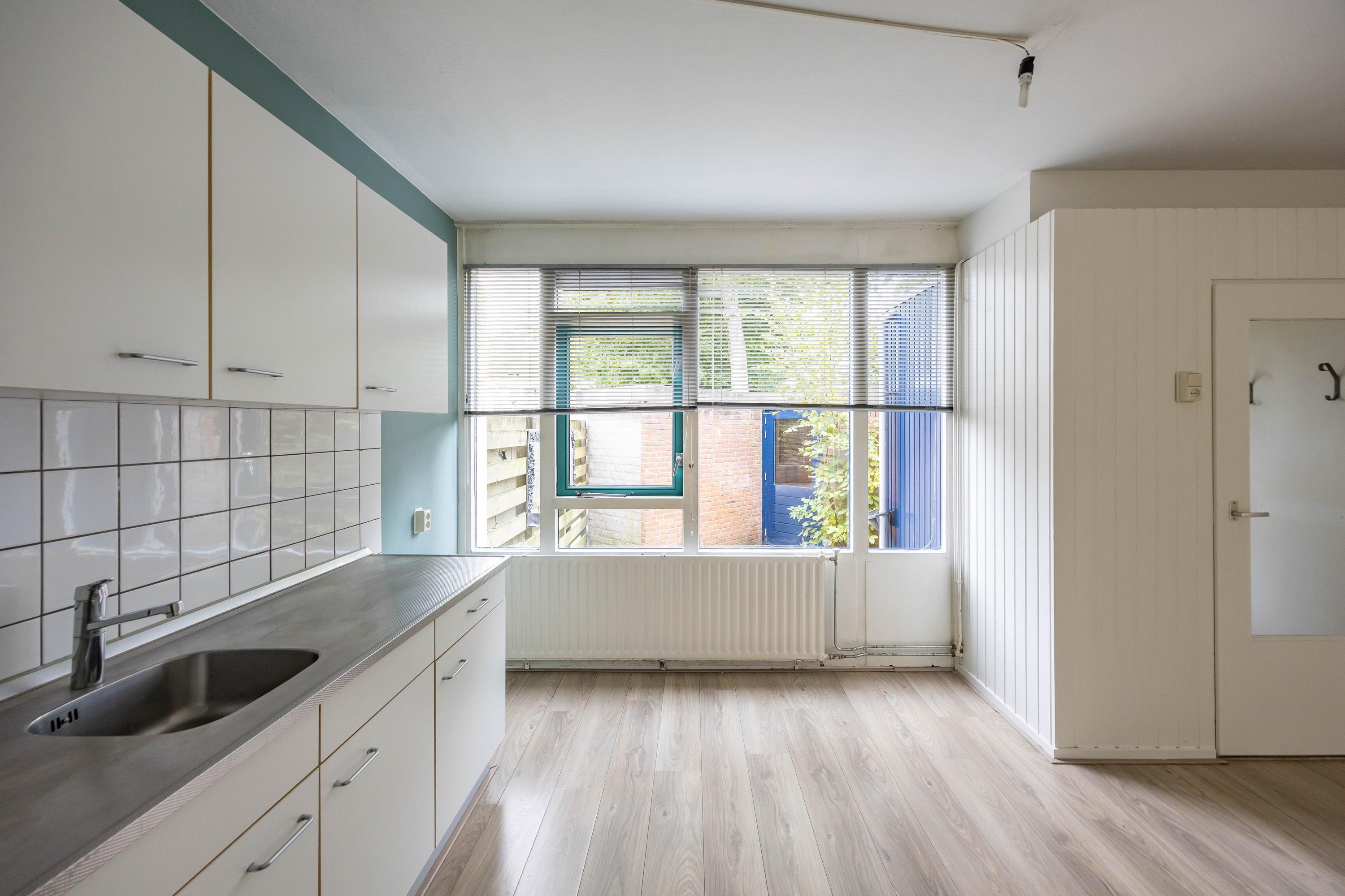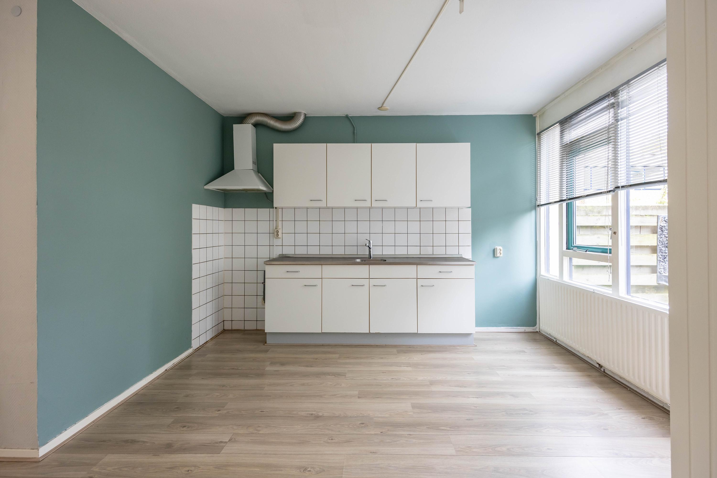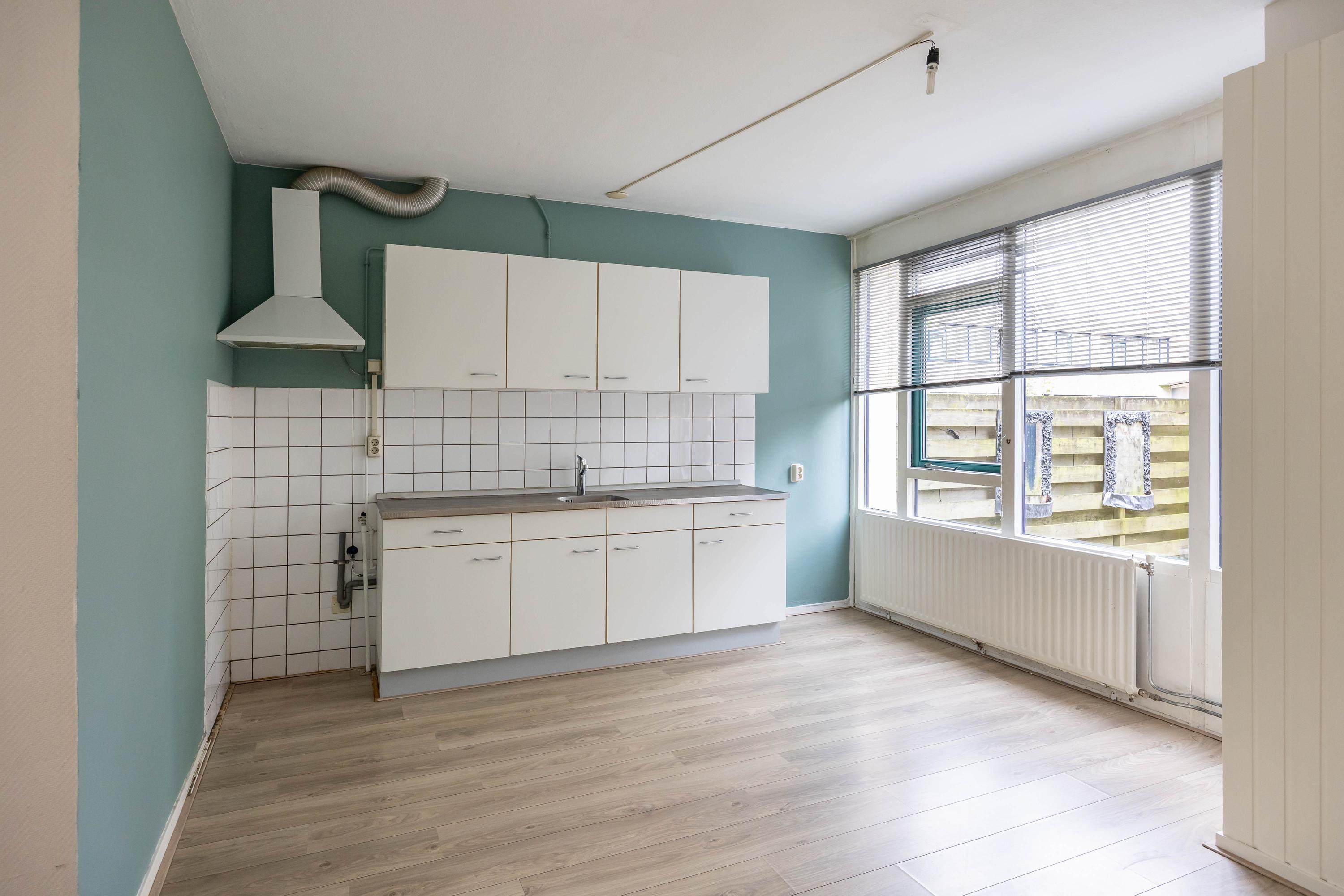 Indeling: Bij binnenkomst aan de voorkant van de woning komt u uit in de hal met garderobe en meterkast. Vanuit hier kunt u de U-vormige woonkamer betreden met open eenvoudige keuken. De woonkamer kijkt uit over de diepe en zonnige tuin. Via de afgesloten hal met toilet en trapopgang kunt u de verdieping bereiken. Op de verdieping zijn drie volwaardige slaapkamers gelegen alsmede een berging met CV-installatie en een eenvoudige badkamer met douche en wastafel.
