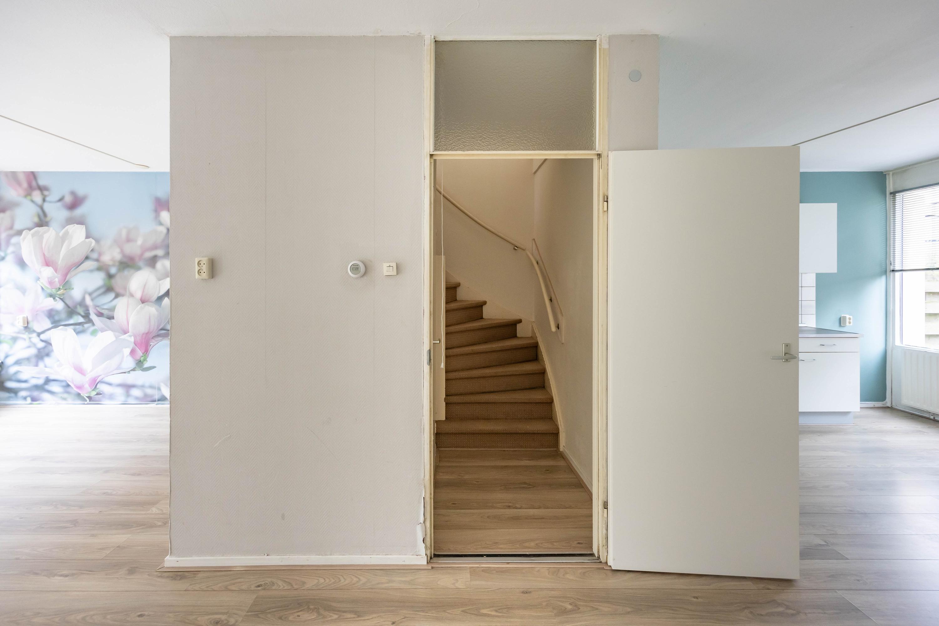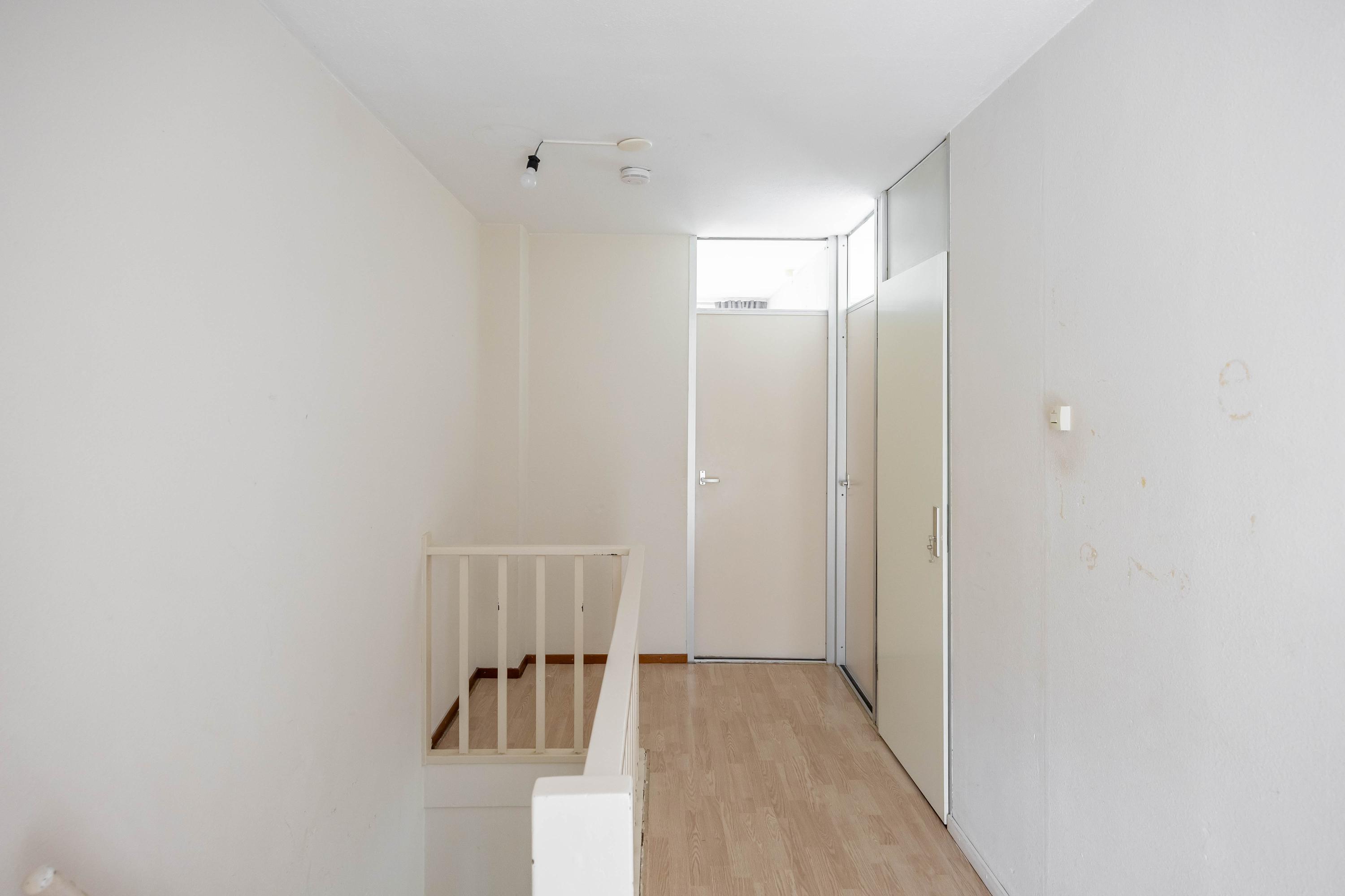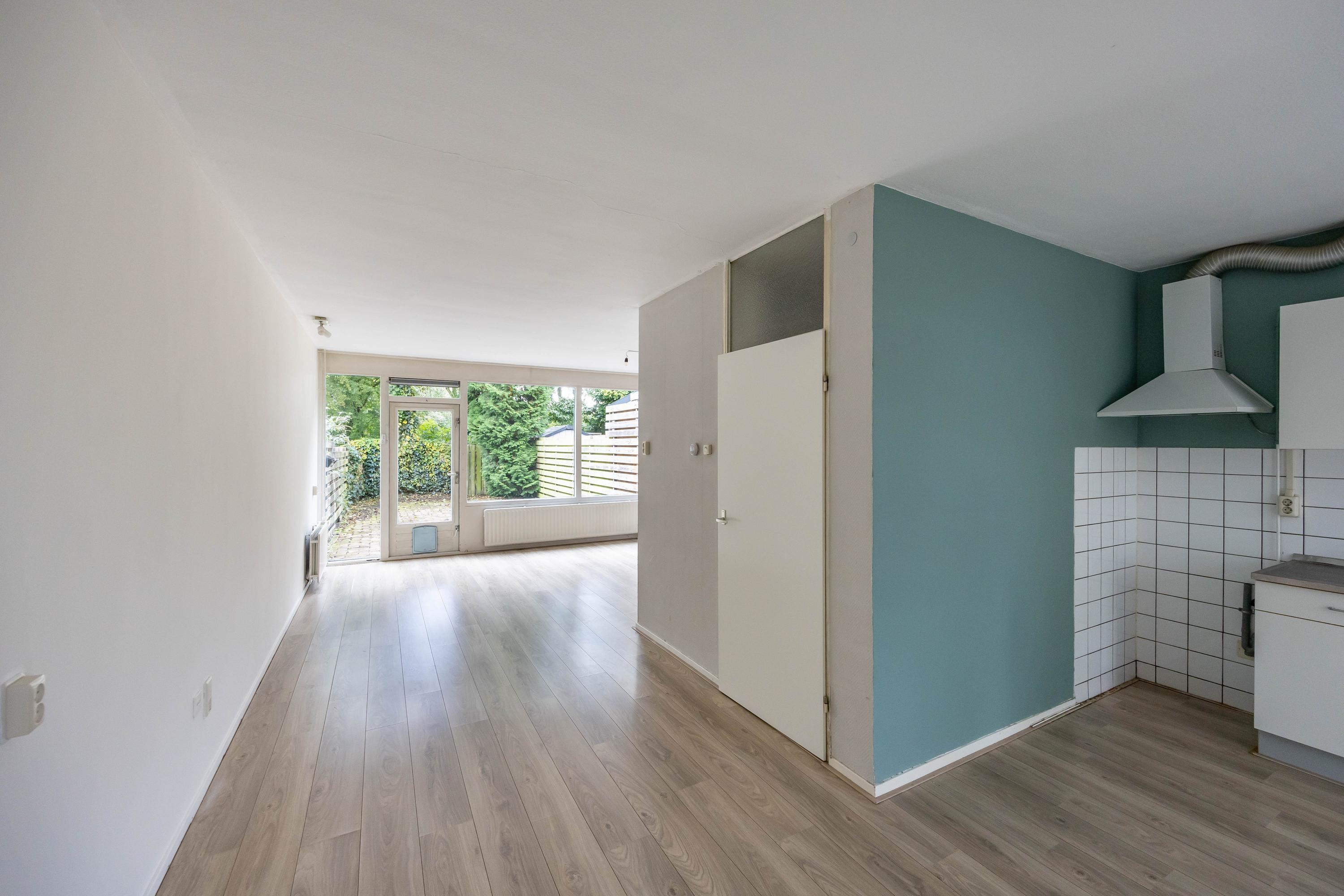 Indeling: Bij binnenkomst aan de voorkant van de woning komt u uit in de hal met garderobe en meterkast. Vanuit hier kunt u de U-vormige woonkamer betreden met open eenvoudige keuken. De woonkamer kijkt uit over de diepe en zonnige tuin. Via de afgesloten hal met toilet en trapopgang kunt u de verdieping bereiken. Op de verdieping zijn drie volwaardige slaapkamers gelegen alsmede een berging met CV-installatie en een eenvoudige badkamer met douche en wastafel.