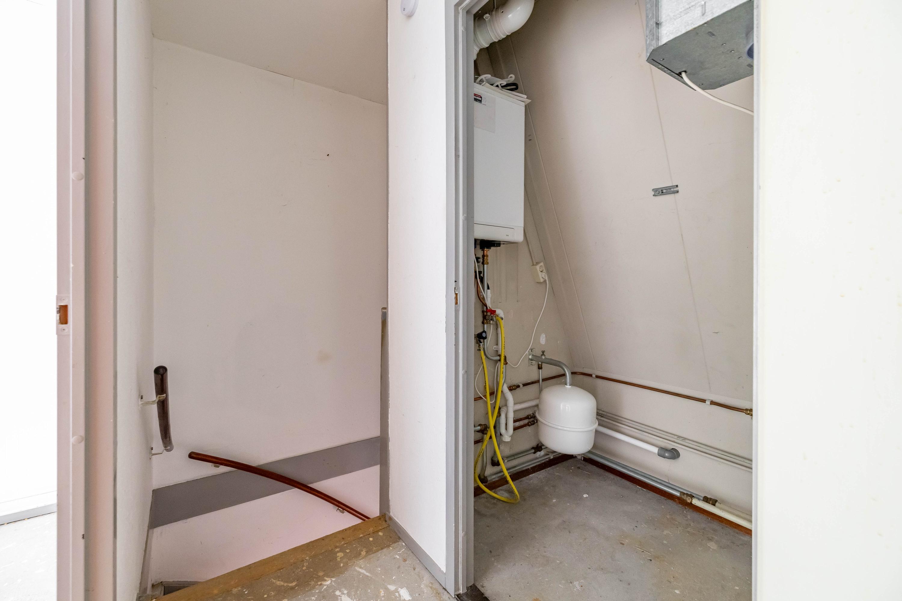 Indeling: Indeling: entree, toilet, woonkamer met open keuken en toegang tot de achtertuin. Verdieping: overloop, bergruimte met CV opstelling, twee slaapkamers en de badkamer. Bij het huis hoort een fietsenberging.